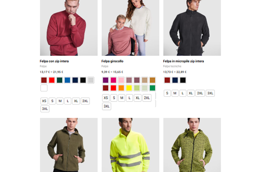 Seleziona i tuoi articoli, scegli i colori che ti rappresentano e le taglie. Aggiungi al carrello tutto ciò di cui hai bisogno, potrai inviare il tuo logo al checkout!