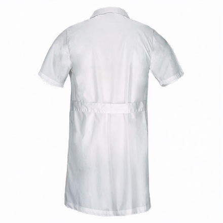 Camice da lavoro a manica corta e tasche. Realizzato in popeline leggero misto cotone con poliestere resistente e duraturo, ampio collo a camicia a forma di V, comodo e rinfrescante, chiusura centrale con bottoni e vita con fascia cucita nella parte posteriore per il massimo comfort, due tasche sul davanti e una sul lato sinistro del petto tipo toppa per avere tutto a portata di mano