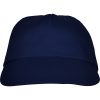 Cappellino 5 pannelli. 2 fori di aerazione ricamati. 4 linee cucite sulla visiera. Fettuccia parasudore interna. Chiusura in velcro.