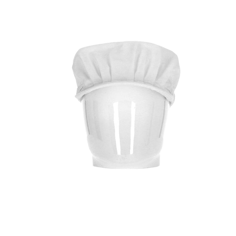 Cappello per alimenti. Realizzato in tessuto twill di cotone misto poliestere resistente e durevole, visiera semirigida, curva e rivestita in tessuto per un maggiore confort, cinta elastica su tutto il contorno per adattarsi comodamente e raccoglie tutti i capelli, cuciture interne rifinite che ne aumentano la resistenza.