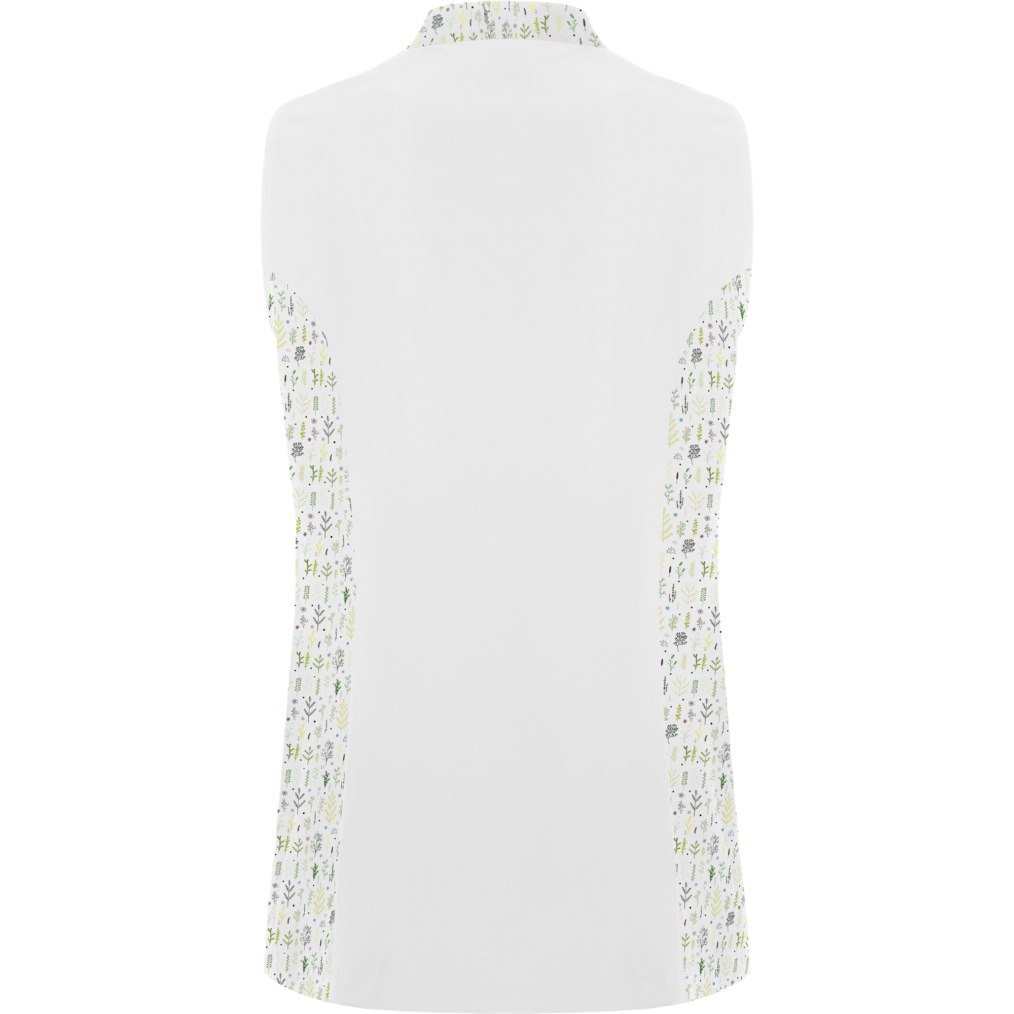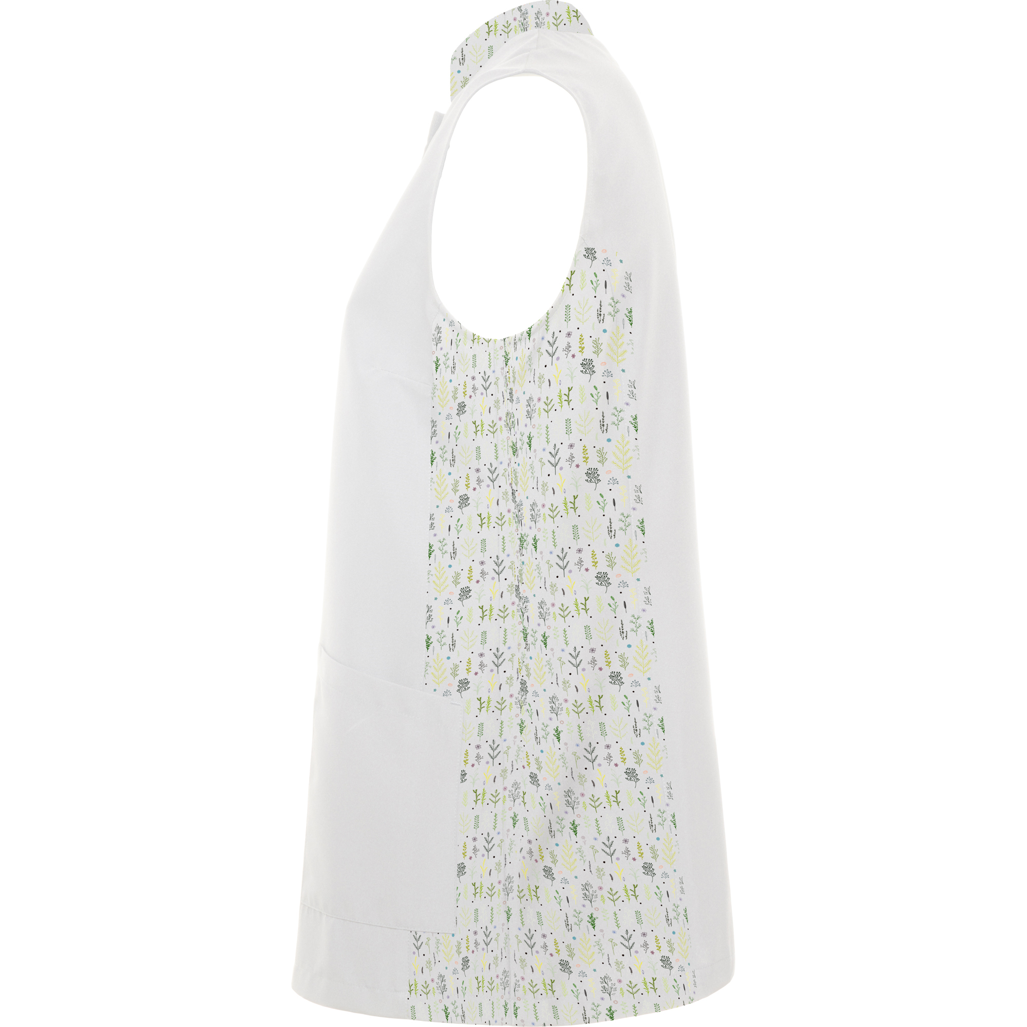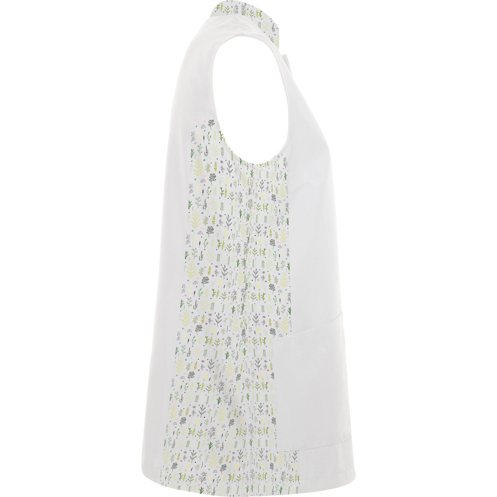 · Collo Mao, cuciture laterali e pences sul petto.