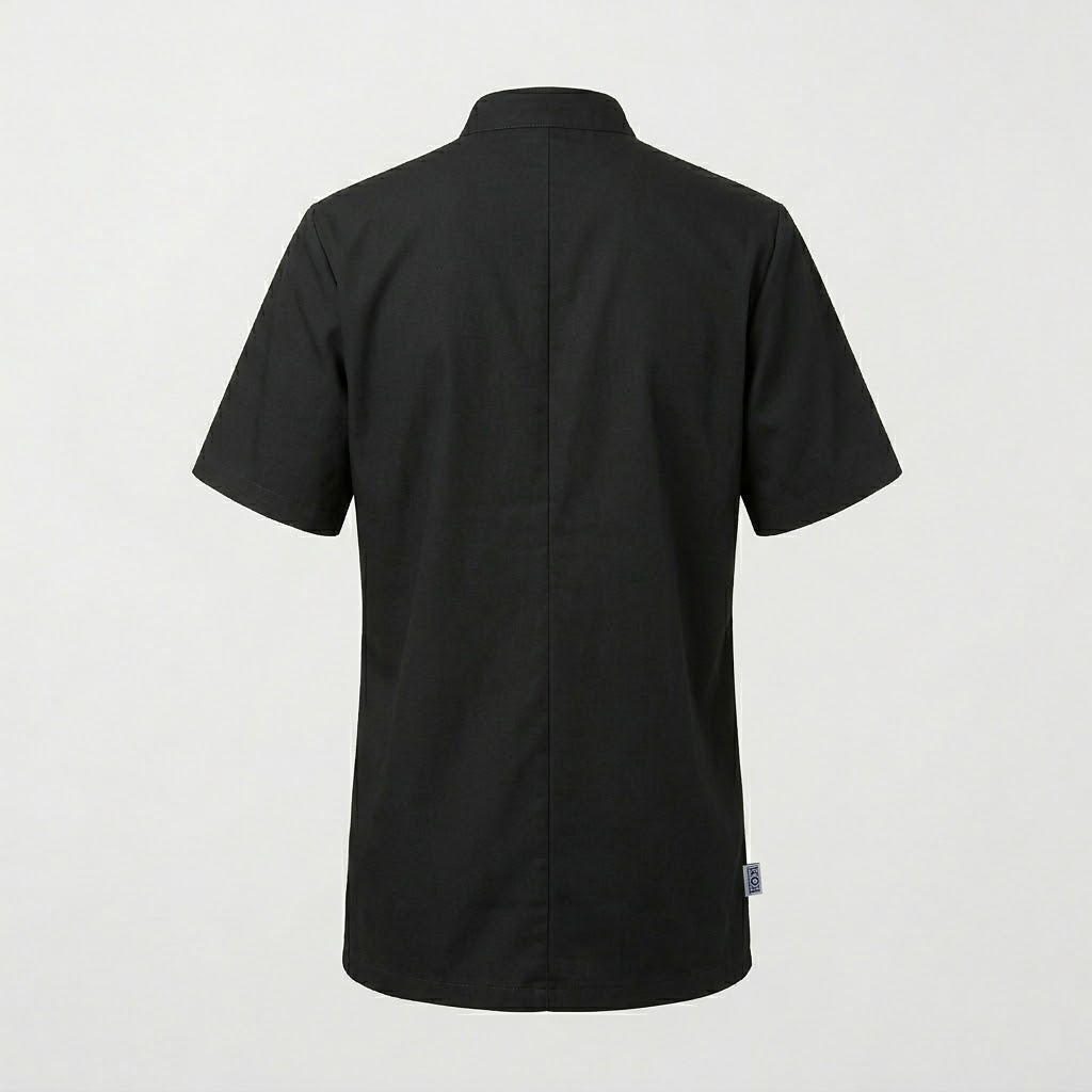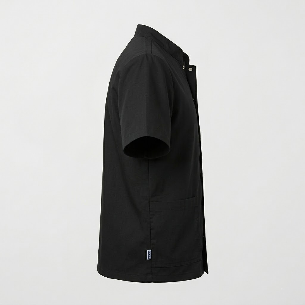 Casacca da uomo Corfù con collo coreano a mezza manica bordeaux. Settore medicale, estetico, sanitario, ospedaliero, alberghiero e industria. Ottima divisa da lavoro per medico, infermiere e dentista. Anche giacca per pizzaiolo, magazziniere e in cucina.