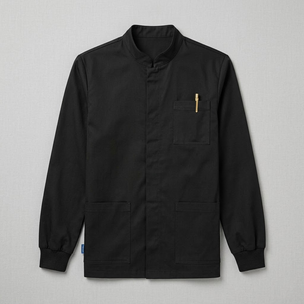 Casacca da uomo Corfù con collo coreano con polso in maglia. Settore medicale, estetico, sanitario, ospedaliero, alberghiero e industria. Ottima divisa da lavoro per medico, infermiere e dentista. Anche giacca per pizzaiolo, magazziniere e in cucina.