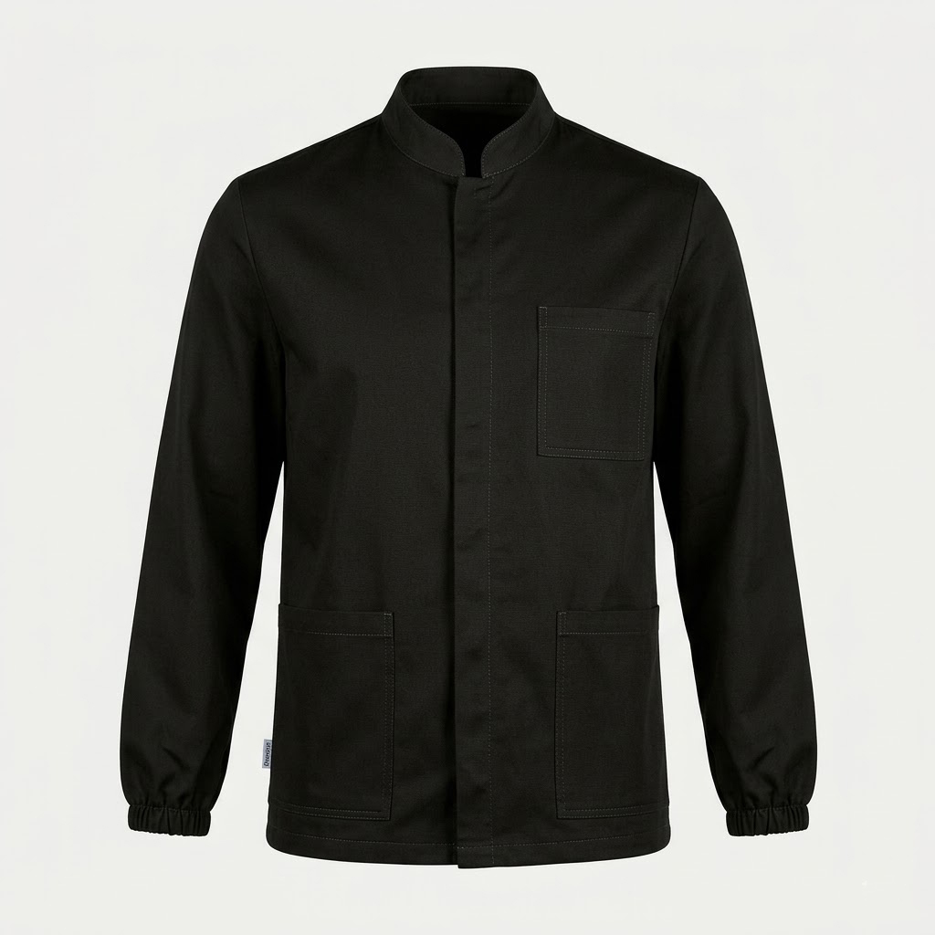 Casacca da uomo Corfù con collo coreano a manica lunga. Settore medicale, estetico, sanitario, ospedaliero, alberghiero e industria. Ottima divisa da lavoro per medico, infermiere e dentista. Anche giacca per pizzaiolo, magazziniere e in cucina.