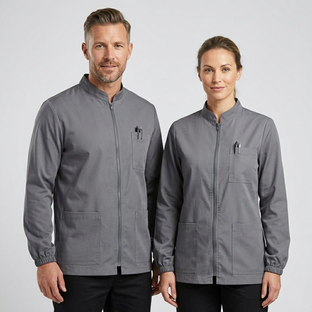 La casacca Samarcanda è una camicia unisex a manica lunga. Per settore medicale, estetico, sanitario e ospedaliero. Ottima divisa da lavoro per medico, infermiere e dentista. Con collo coreano, allacciatura con cerniera, 2 tasche e taschino.