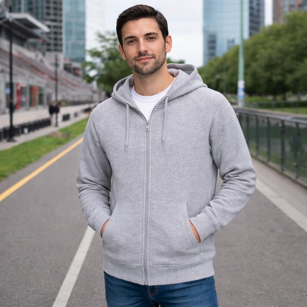 Felpa con cappuccio, con zip intera, ed elastico in vita. Realizzata in robusto e durevole pile misto cotone/poliestere con interno felpato per una maggiore ritenzione termica e un maggiore comfort, cappuccio a doppio strato con coulisse per una migliore vestibilità., due tasche a canguro divise in vita per avere tutto a portata di mano, cita e polsini elasticizzati a costine per una vestibilità confortevole.