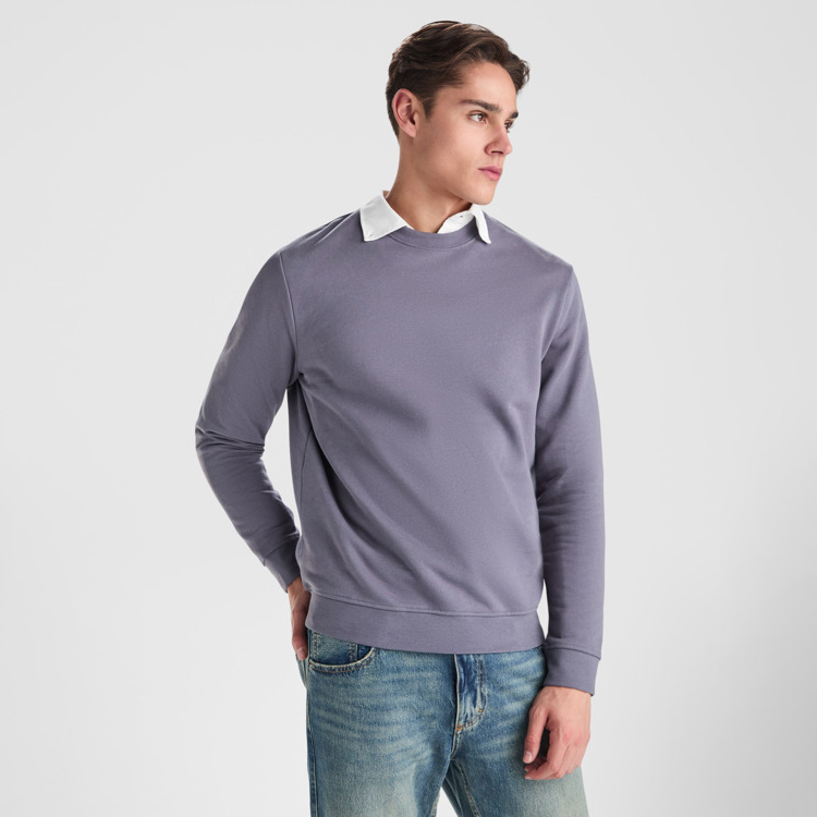 Felpa girocollo unisex. Colletto, polsini e vita a coste 2×1 con elastan. Cuciture nastrate in tessuto coordinato.