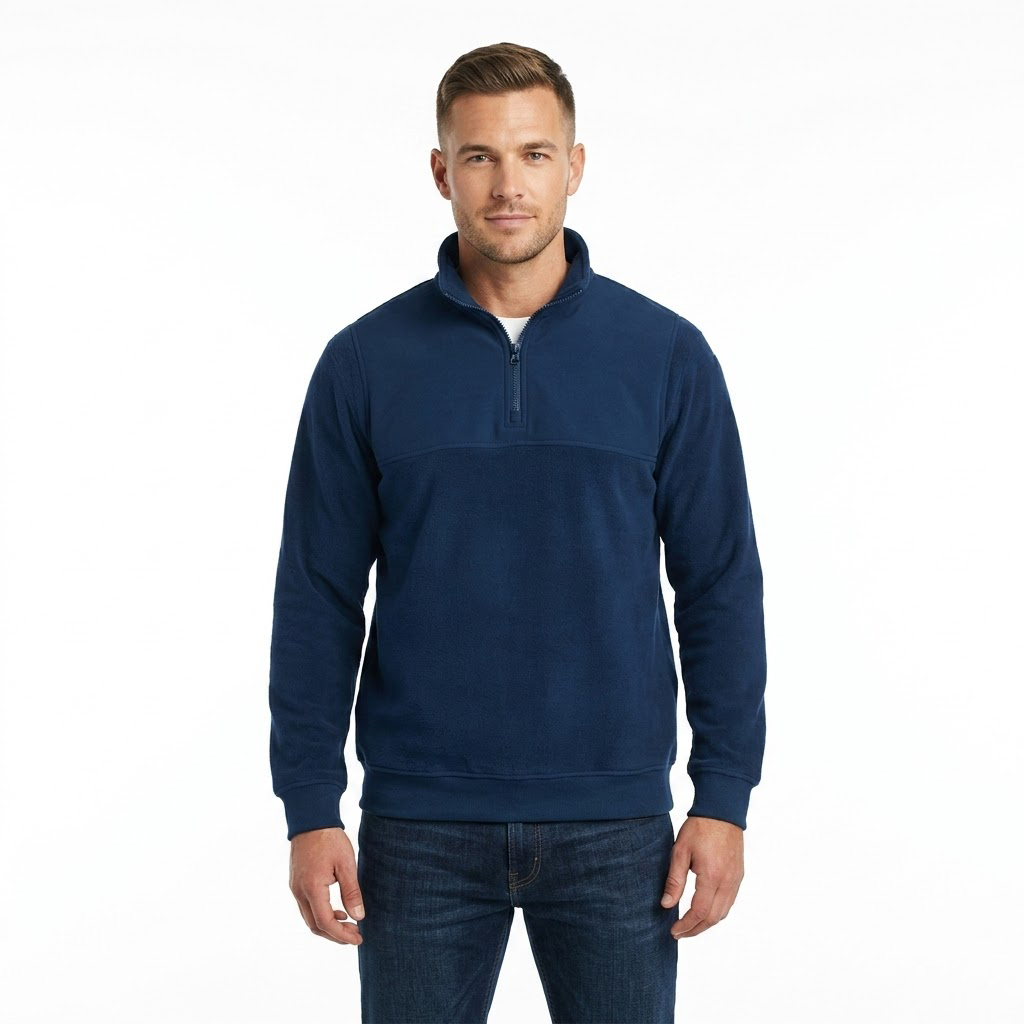 Maglione in pile rinforzato, a collo alto con mezza zip.
