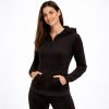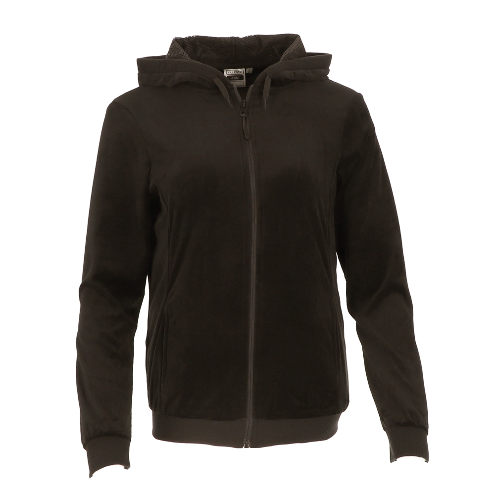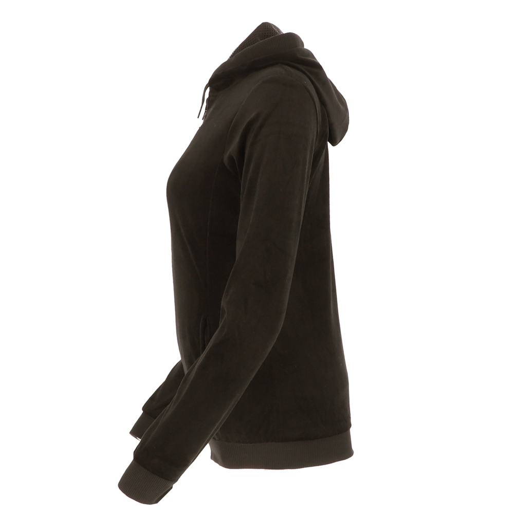 Felpa con cappuccio e zip intera da donna. Tessuto vellutato all´esterno e piatto all´interno, morbido e piacevole al tatto, cappuccio con coulisse regolabile per una migliore vestibilità e tessuto a rete all´interno per una migliore ventilazione, polsini e vita a costine per una vestibilità confortevole, due tasche in vita per avere tutto a portata di mano.