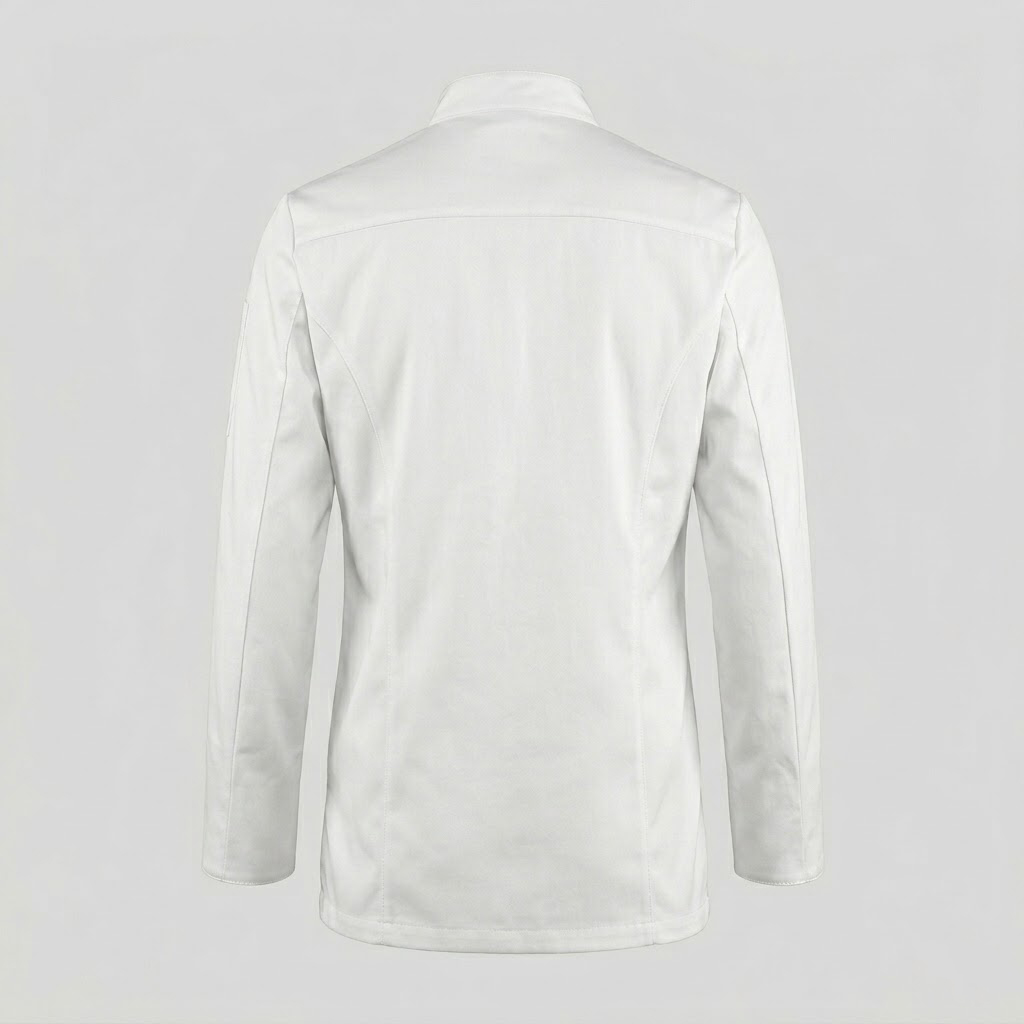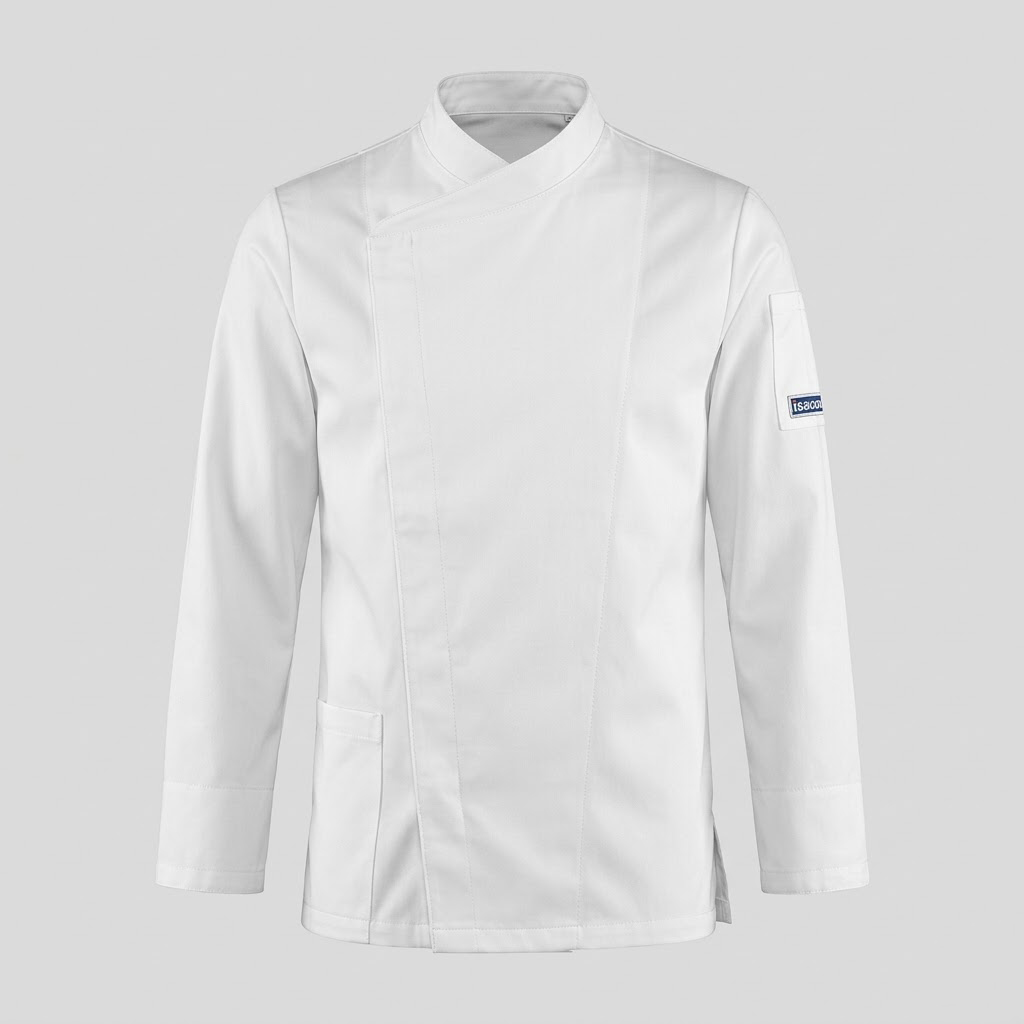 Giacca Bolton Tecnostretch bianca a manica lunga, un tessuto altamente tecnologico, fresco, leggero e resistente. Dotata di chiusura comodo laterale e ampia tasca, è perfetta per il settore sanitario, estetico e alberghiero. La combinazione tra stile e funzionalità lo rende essenziale per chi cerca un look professionale e confortevole