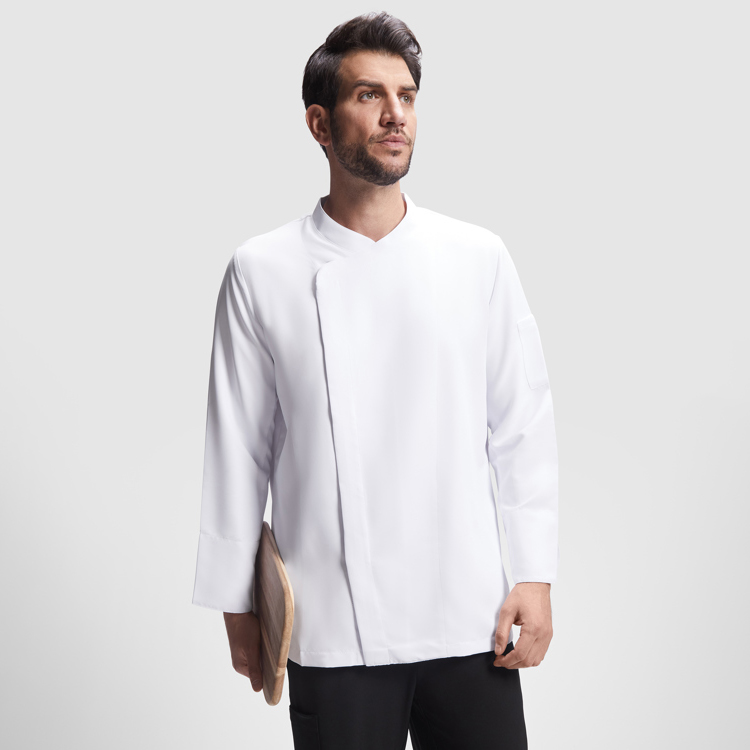 · Chiusura centrale incrociata con bottoni a pressione nascosti.