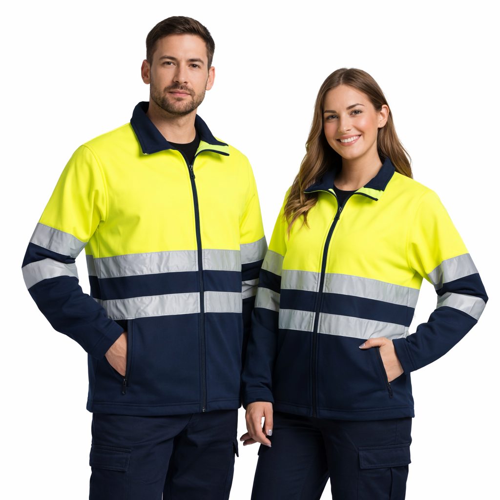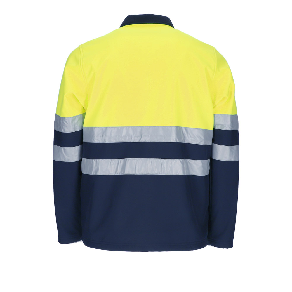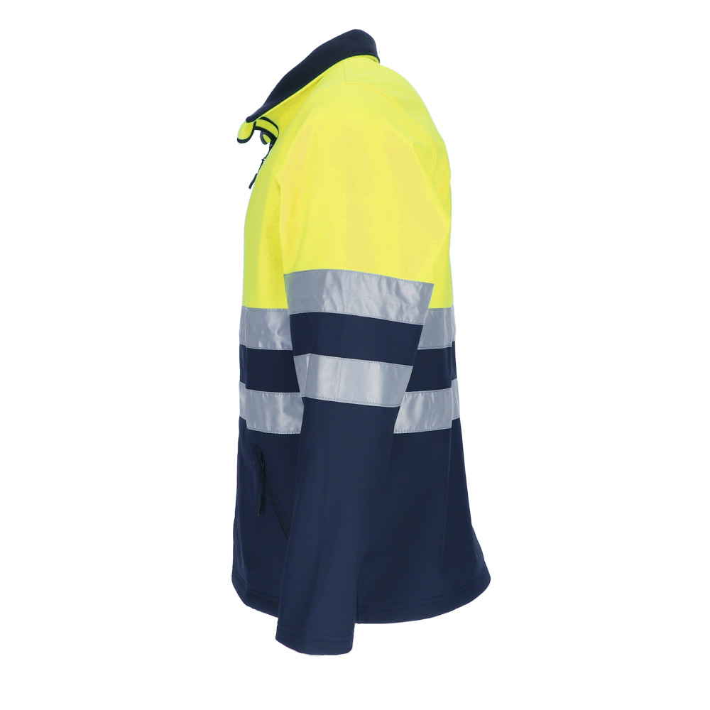 - Realizzata in tessuto softshell elasticizzato a tre strati (esterno piatto e idrorepellente, intermedio traspirante e interno in micropile), include due bande catarifrangenti cuciti su busto, schiena e maniche per una miglior sicurezza.