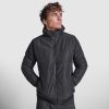 Giubbotto imbottito idrorepellente. Collo alto. Cappuccio rimovibile con regolatori. Zip centrale in tono con tiretto e mentoniera. Due tasche laterali con cerniera. Costine 2×1 nei polsini e vita. Accesso per la personalizzazione sul lato sinistro e sulla schiena.
