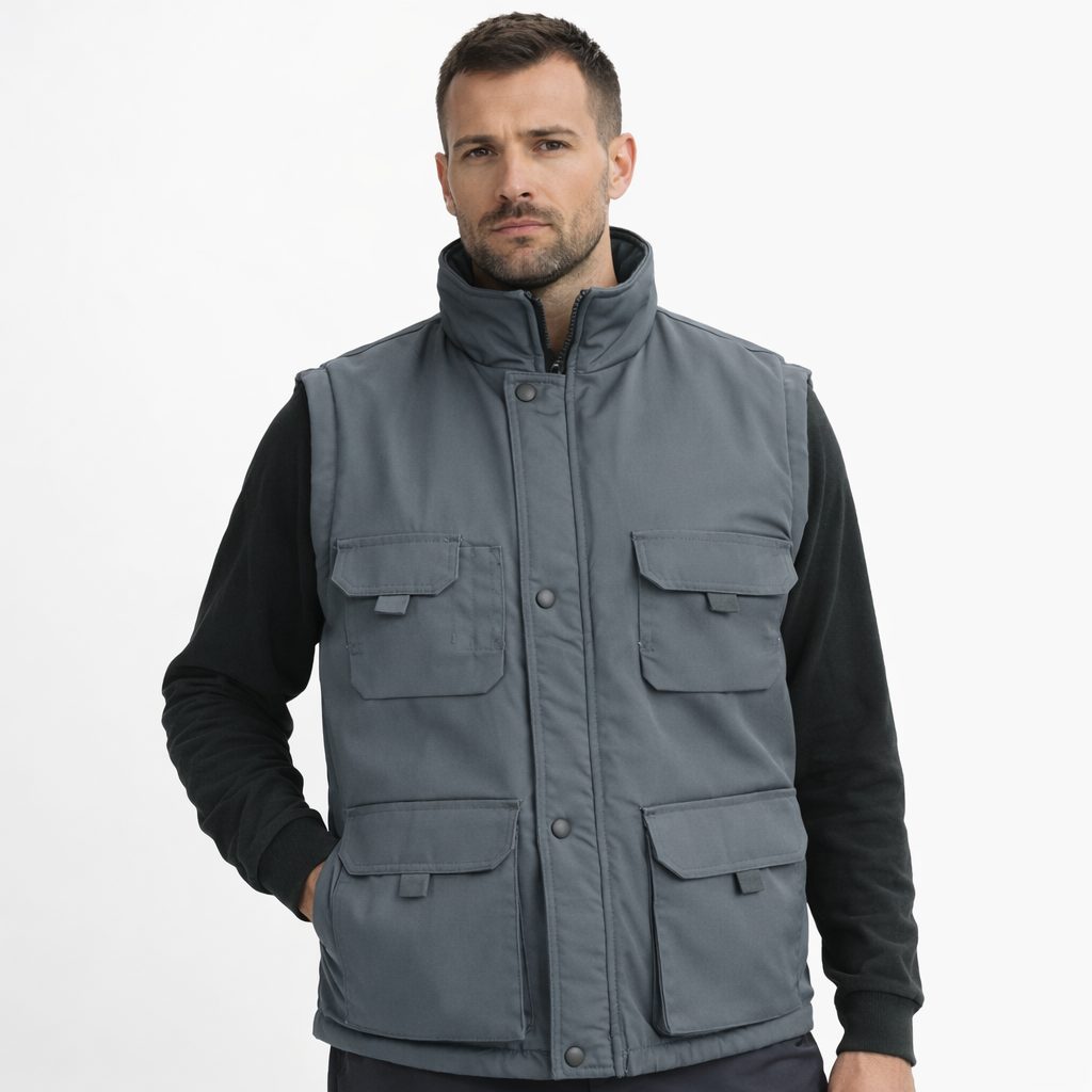Gilet da lavoro multitasche trapuntato con pile interno.