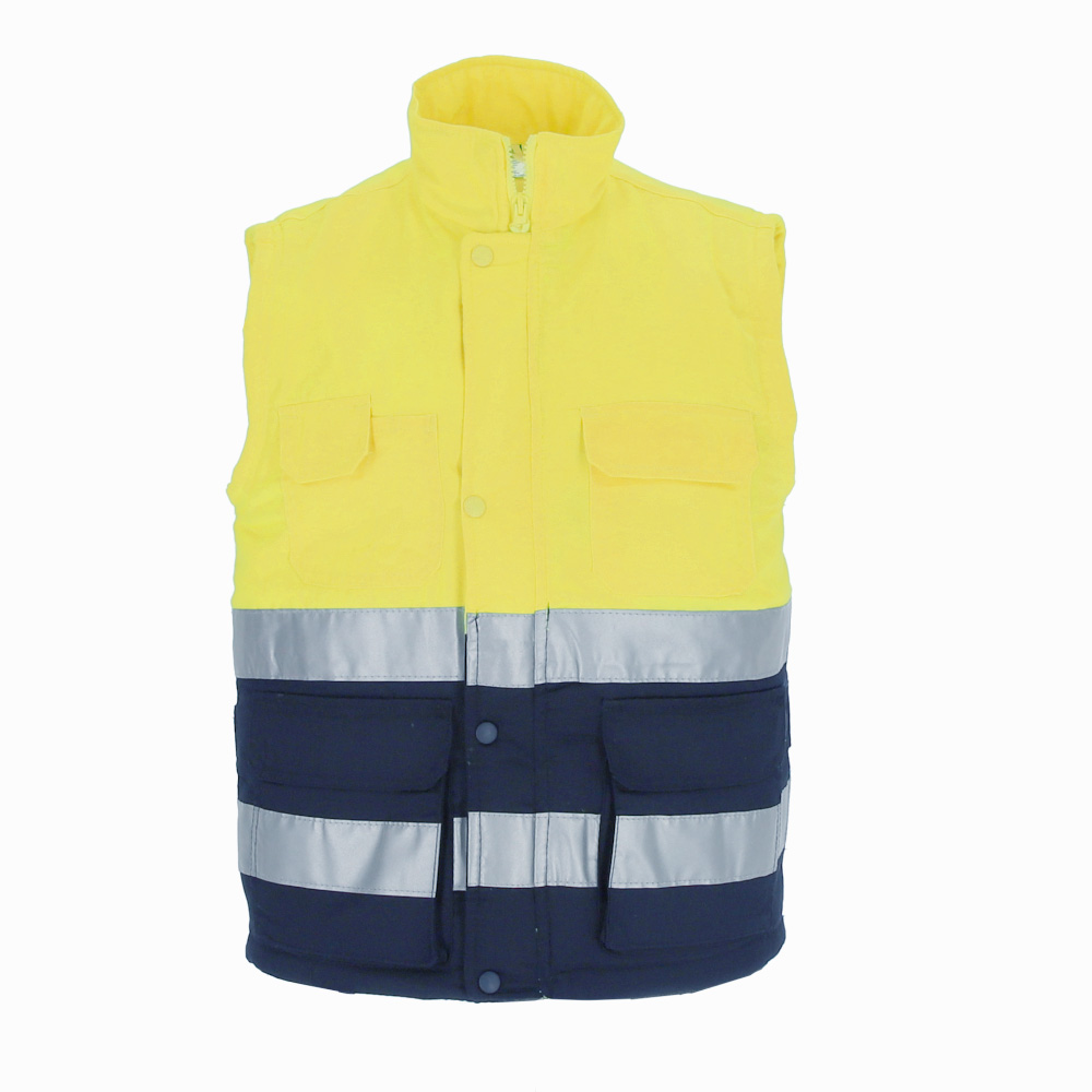 - Realizzato in twill resistente e durevole all´esterno, imbottitura trapuntata e fodera interna liscia che garantisce la ritenzione termica, include due bande catarifrangenti cuciti sul busto e sulla schiena per una miglior sicurezza.