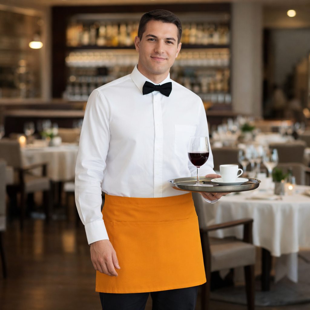 Grembiule senza pettorina multitasche. Realizzato in tessuto twill misto cotone/poliestere resistente e durevole, ampi lacci laterali da regolare tramite nodo in vita, ampia tasca centrale con tre scomparti per avere tutto a portata di mano, contorni con cuciture ripiegate e passanti sulle tasche che ne aumentano la resistenza.