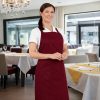 Grembiule con pettorina e dorso incrociato regolabile. Realizzato in tessuto twill di misto cotone/poliestere robusto e durevole, lacci spessi che salgono dalla pettorina, si incrociano fino ai passanti laterali per essere infine regolati tramite nodo alla vita, contorni con cuciture raddoppiate che ne rafforzano la struttura, due ampie tasche anteriori per avere tutto a portata di mano, con imboccatura obliqua per il massimo confort.