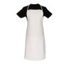 Grembiule con pettorina, in spugna da un lato e impermeabile dall´altro. Realizzato in tessuto doppio: spugna assorbente per trattenere i liquidi nella parte anteriore e tessuto impermeabile PU nella parte posteriore, cinghie laterali da regolare con nodo in vita e sottile tracolla, contorni bordati per una migliore finitura.