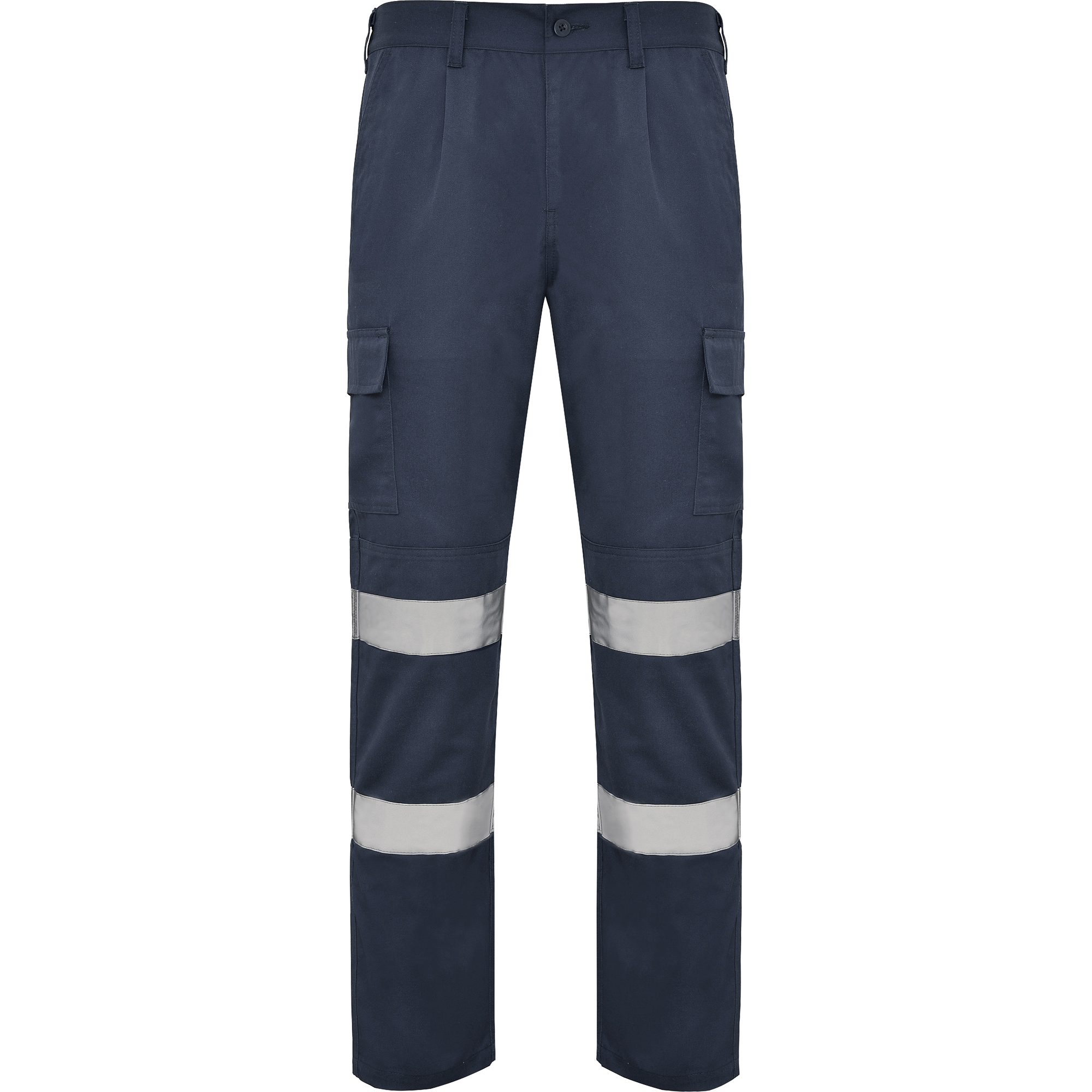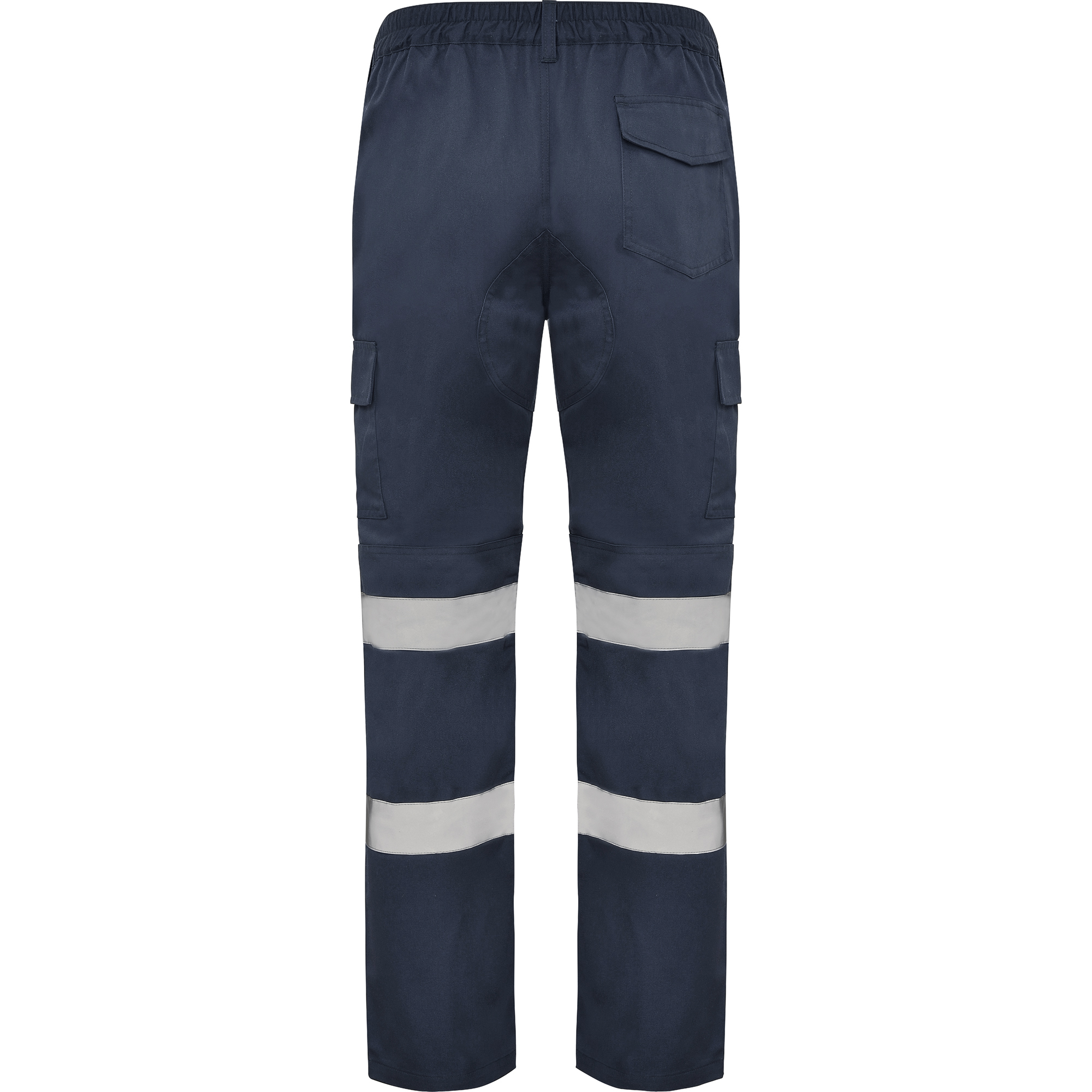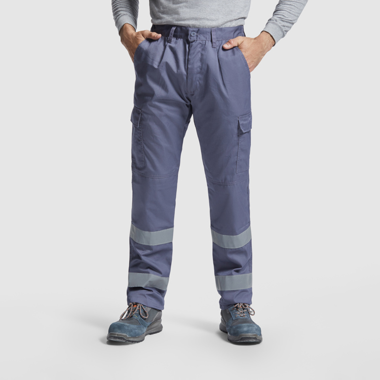 Pantaloni lunghi ad alta visibilità notturna in tessuto resistente.