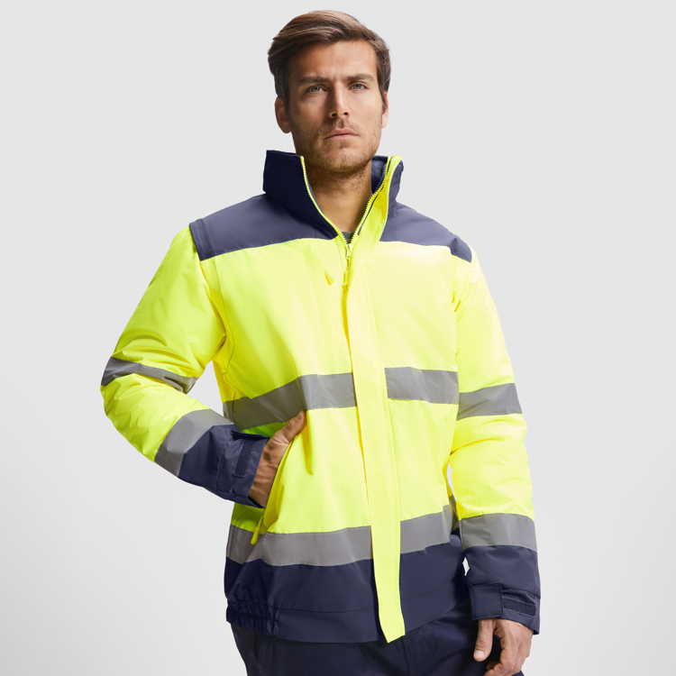 Parka trapuntato ad alta visibilità combinato in due colori. Resistente all’acqua e al vento.