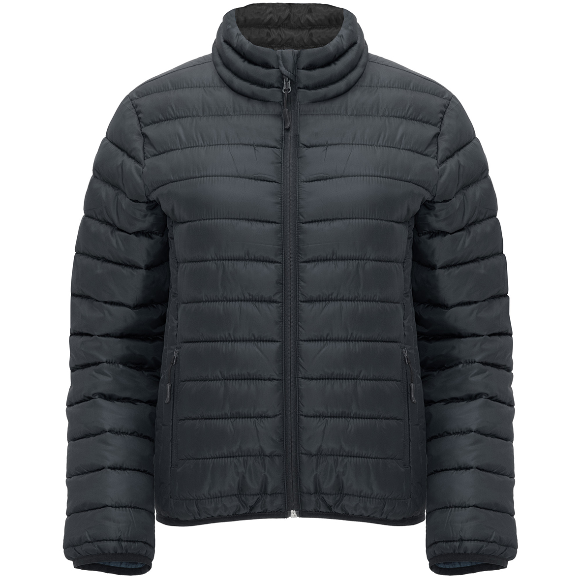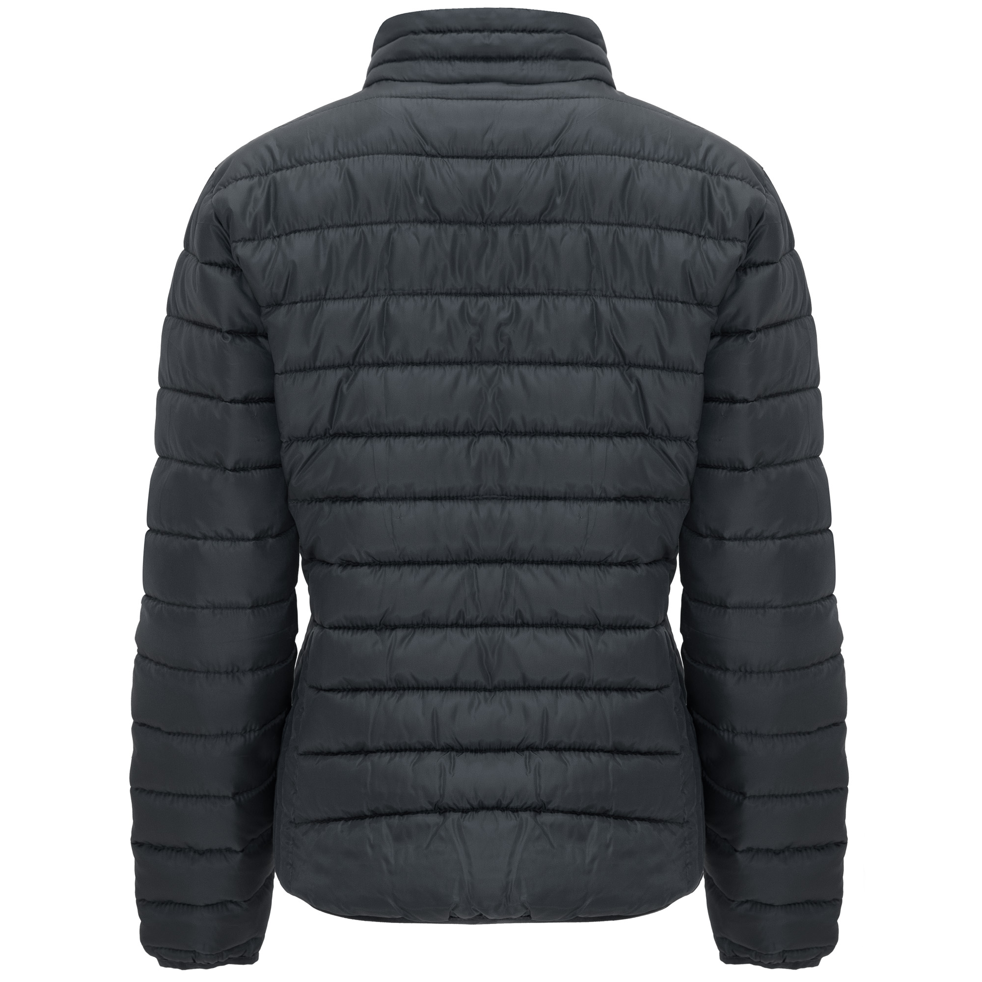 Giacca trapuntata aderente con imbottitura tatto piuma. Cerniere invertite in tinta con protezione per il mento e tirante.
