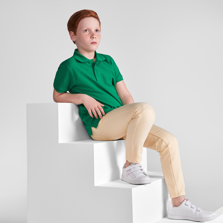 Polo in cotone a maniche corte. Punto piqué. Colletto e maniche intrecciati 1×1. Chiusura a 3 bottoni. Scollo nastrato in tessuto coordinato. Spacchetti laterali sull’orlo. Tasca, opzionale.