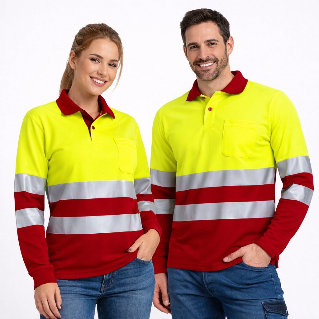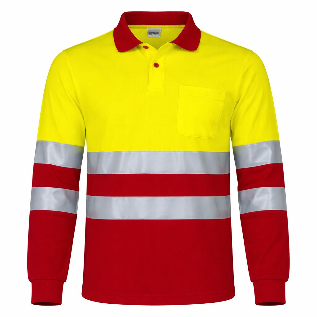 Polo Alta Visibilità bicolore, manica lunga e taschino, con effetto termico.