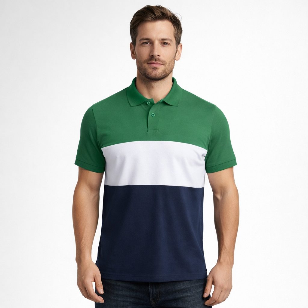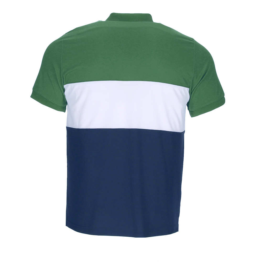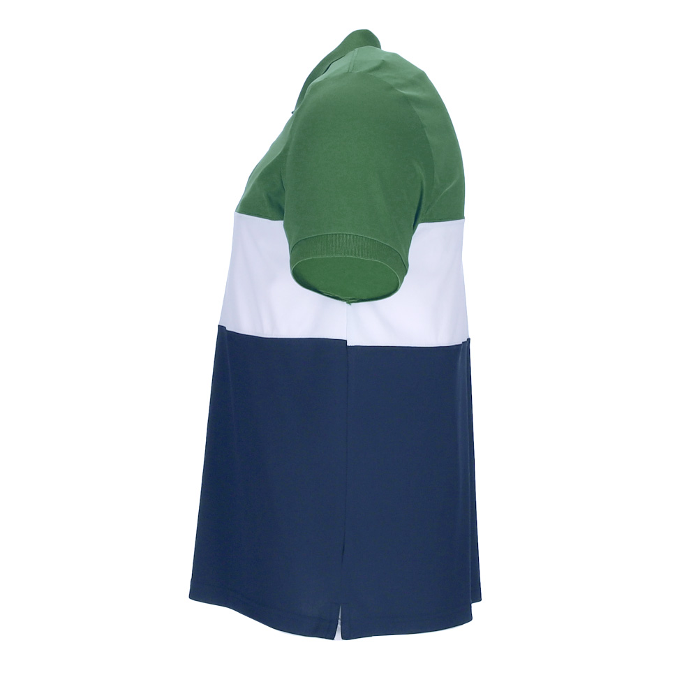 Polo tecnica manica corta e disegno tricolore su entrambi i lati.