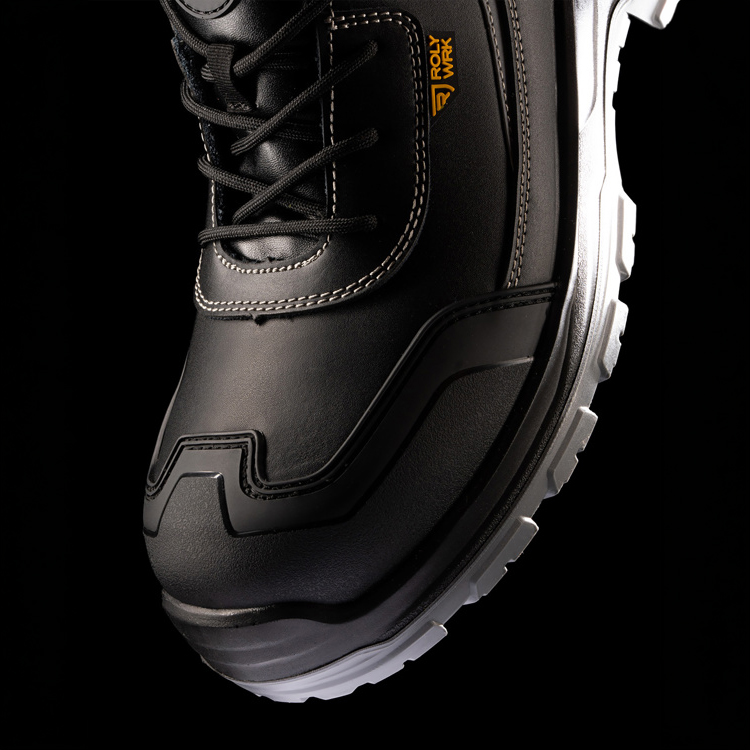 Scarpe da lavoro con rivestimento in pelle e tessuto a rete, offrono durata, comfort e traspirabilità.