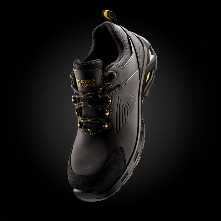 Scarpe da lavoro realizzate in tessuto di pelle con rivestimento in fibra. Impermeabili, offrono durata, protezione e comfort per ambienti di lavoro esigenti.