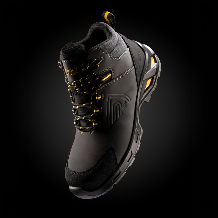 Scarponi da lavoro realizzati in tessuto di pelle con rivestimento in fibra. Impermeabili, offrono durata, protezione e comfort per ambienti di lavoro esigenti.