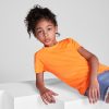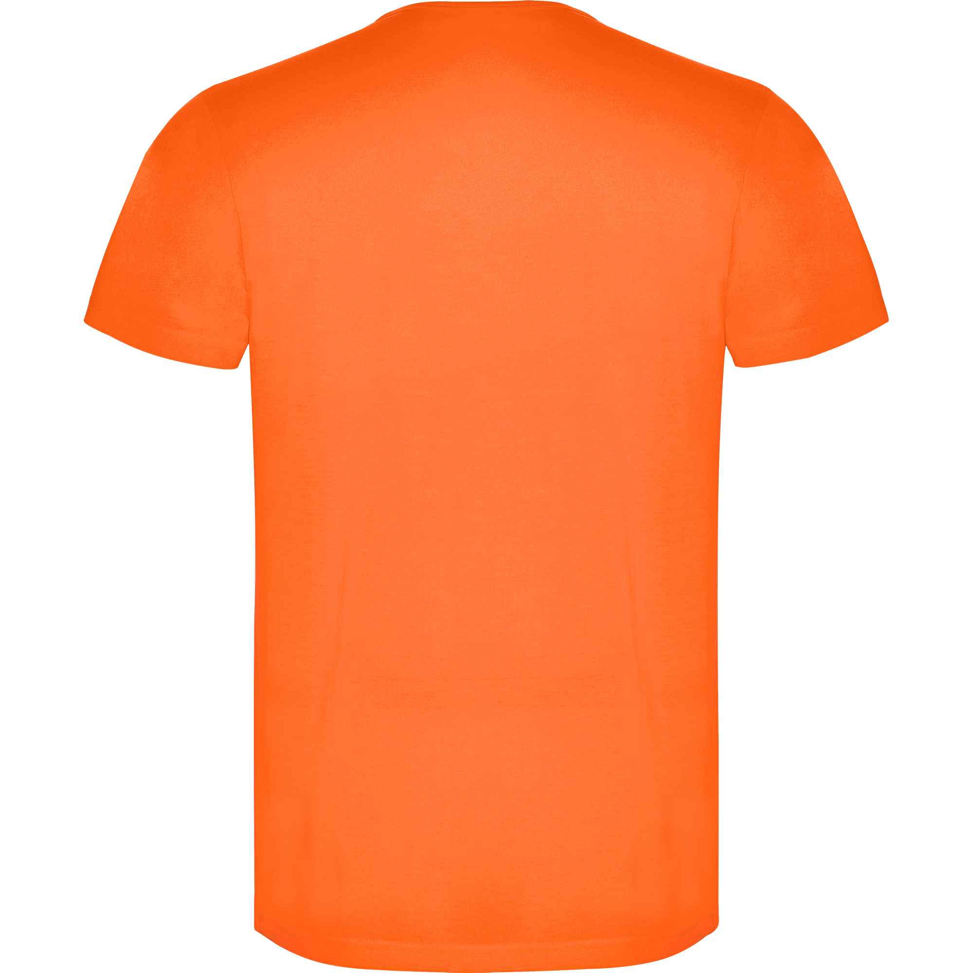 T-shirt a maniche corte in poliestere effetto cotone con cuciture laterali. Scollo rotondo con bordo in tessuto coordinato.
