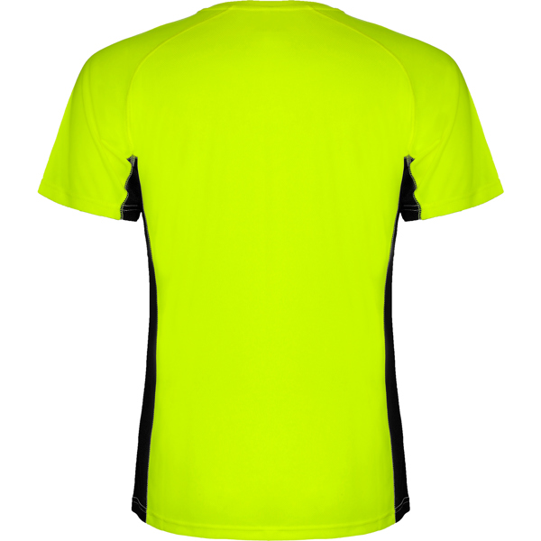 T-shirt tecnica traspirante bicolore con maniche raglan. Pannelli laterali in tessuto microforato. Girocollo e nastratura del colletto tono su tono.
