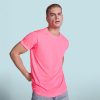 T-shirt a maniche corte in poliestere effetto cotone con cuciture laterali. Scollo rotondo con bordo in tessuto coordinato.
