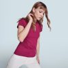 T-shirt aderente a maniche corte con vita affusolata. Girocollo a coste 1×1. Scollo nastrato in tessuto coordinato.