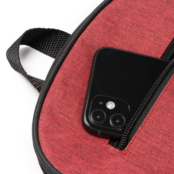 Zaino realizzato in RPET 300D. Tasca principale e frontale con chiusura a zip. Manici imbottiti e tasche laterali dal design microforato.
