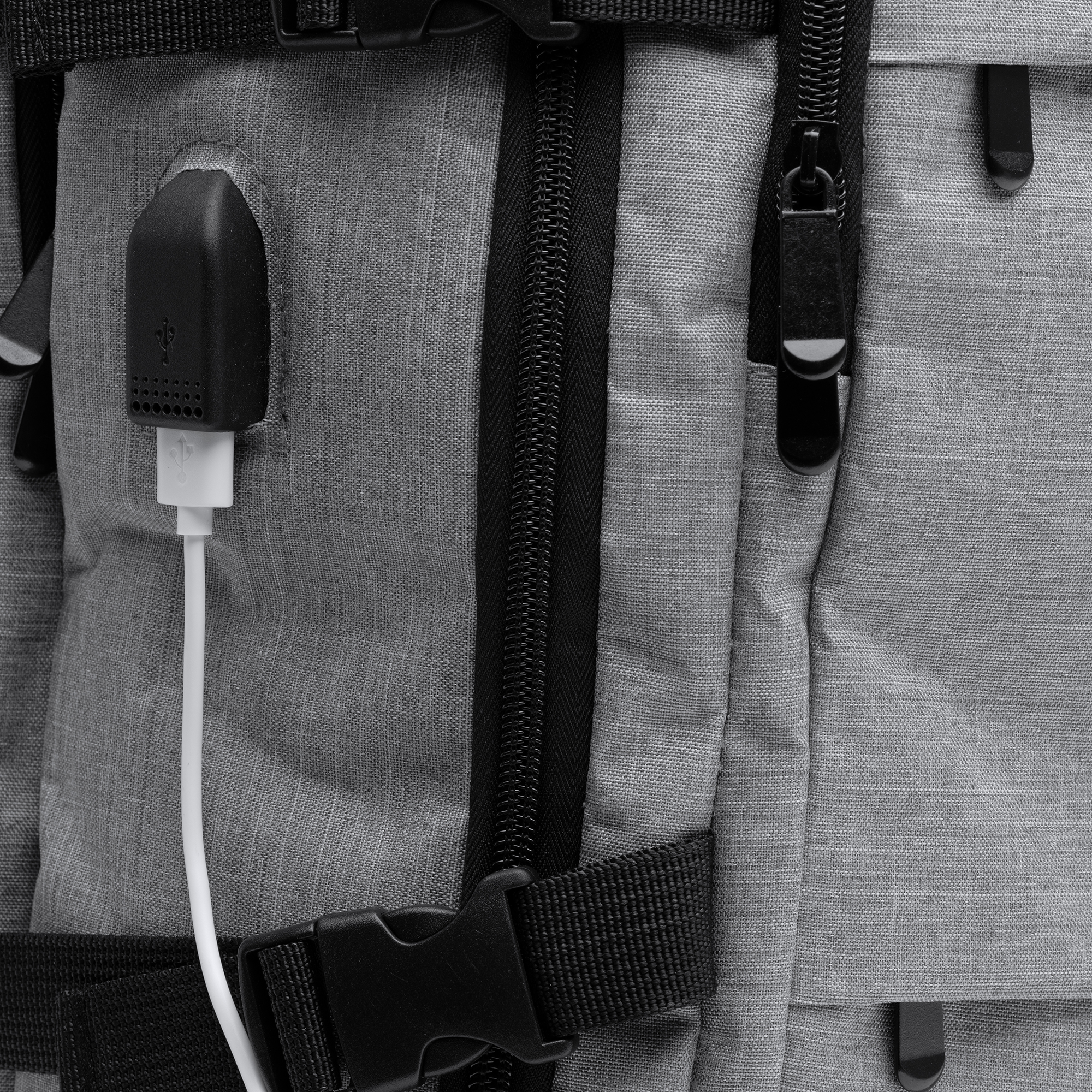 Include uno scomparto imbottito per laptop da 17,3”, una presa USB con cavo micro USB per collegare un Power Bank (non incluso) e uno scomparto traspirante per le scarpe.