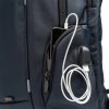 Zaino in nylon. Tasca interna imbottita ideale per il computer portatile (17″). Spallacci e schiena imbottiti. Scomparto con uscita USB per collegare un power bank (non incluso). Include un cavo micro USB.